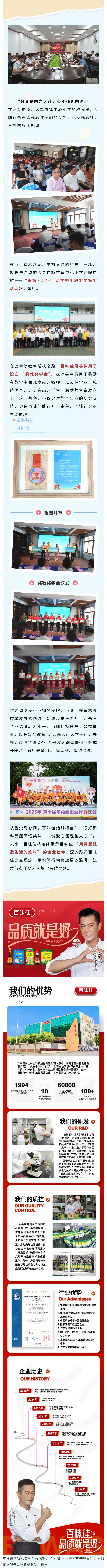 百味佳公益助學(xué),用愛(ài)與希望照亮寮湞教育幫扶之路! 發(fā)布時(shí)間:9/3/2025 2:24:38 PM 相關(guān)閱讀: 百味佳公益助學(xué),用愛(ài)與希望照亮寮湞教育幫扶之路! 七夕味覺(jué)“食”刻,用百味佳醬料點(diǎn)燃浪漫餐桌!2025/09/03 秋日貼膘季|用酸甜橙香與醇厚醬香,解鎖初秋味覺(jué)新體驗(yàn)!2025/09/03 新品上市 百味佳焙煎芝麻口味沙拉汁,為輕食簡(jiǎn)餐添好味!2025/09/03 情暖八一 百味佳攜手共赴一場(chǎng)老兵之約,以公益之心傳承紅色軍魂2025/09/03 重磅官宣,佳哥表情包全新上線啦,快來(lái)一起聊天吧!2025/09/03
