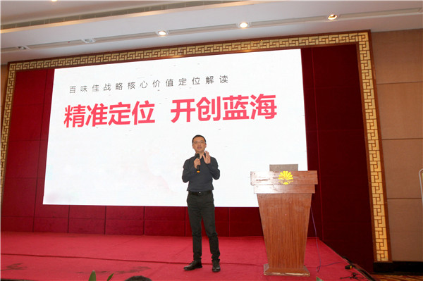 隨后,營銷顧問張老師以“精準(zhǔn)定位,開創(chuàng)藍(lán)海”為題,對百味佳戰(zhàn)略核心價(jià)值進(jìn)行了深刻的定位解讀,他指出,在符合行業(yè)態(tài)勢以及自身優(yōu)勢的基礎(chǔ)上,百味佳要實(shí)現(xiàn)“高品質(zhì)鮮香調(diào)味料”的戰(zhàn)略定位,就要落實(shí)核心品類打造上,實(shí)現(xiàn)以品類托品牌。同時(shí)明確新零售形勢下,百味佳將滾動運(yùn)營發(fā)展,精準(zhǔn)定位、精分市場、產(chǎn)品升級,開創(chuàng)更大更好的藍(lán)海市場。張老師的精彩分享贏得了全場熱烈掌聲。