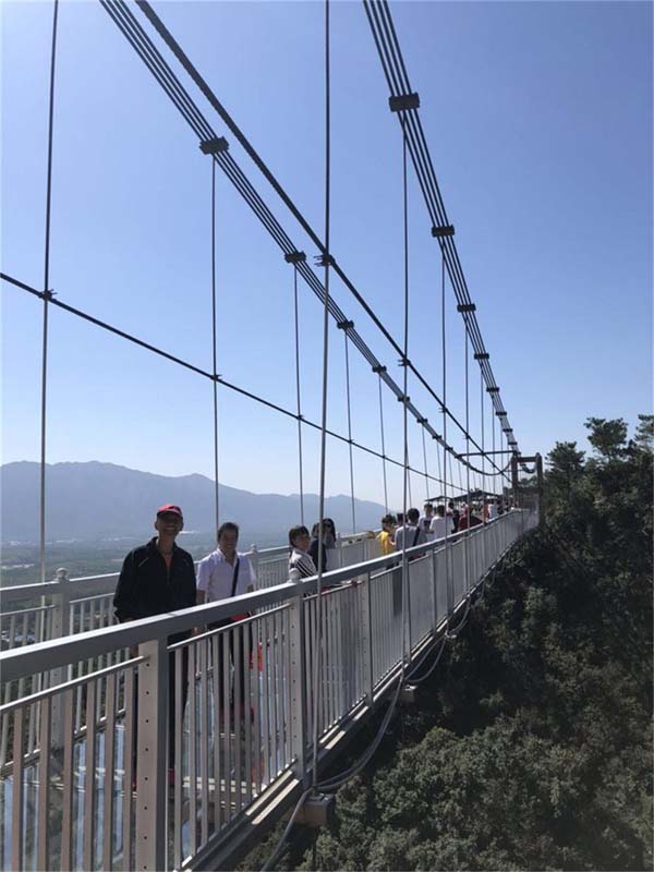 遠(yuǎn)觀,吊橋宛如一條巨龍懸空倚在兩山之中欲騰云沖天?粗旅娴拿軈擦志退銢]有恐高癥,雙腳也會發(fā)軟再也控制不住自己發(fā)出尖叫聲。