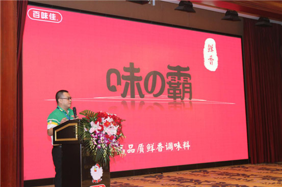 藉此年度盛會之際,百味佳不忘老朋友之情,優(yōu)先于會上公布了旗下子品牌——味之霸全新系列產(chǎn)品矩陣,市場營銷部經(jīng)理楊進華從味之霸的品牌創(chuàng)建背景、品牌定位、設(shè)計語言及市場機會和價值,詳細地進行全面的闡述分享。