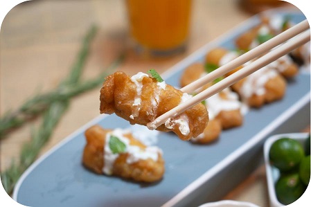 食評:巴沙魚柳嫩滑無骨,可做魚片可油炸。青芥辣和酸奶調(diào)勻成醬,用來拌油炸后的巴沙魚柳,清爽去膩,加上薄荷葉進(jìn)食,一口涼喉又上頭。